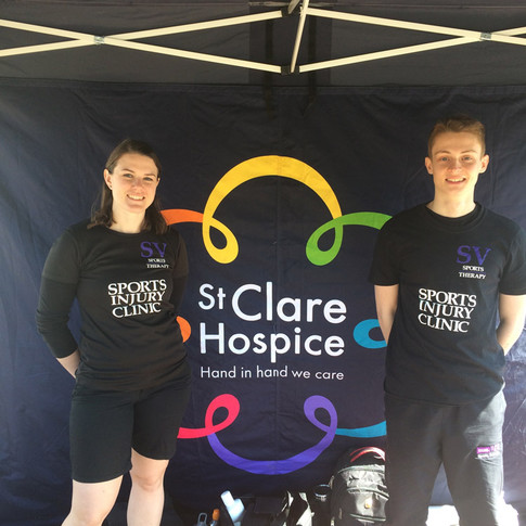 Members of the SV Sports Therapy team were on hand to offer pre and post-race treatments to the runners - with all donations going to St Clare's.